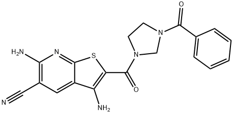 - Synonyms: 3,6-diamino-2-(3-benzoylimidazolidine-1-carbonyl)thieno[2,3-b]pyridine-5-carbonitrile Thieno[2,3-b]pyridine-5-carbonitrile, 3,6-diamino-2-[(3-benzoyl-1-imidazolidinyl)carbonyl]-