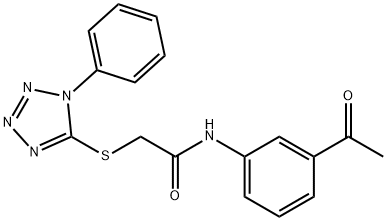 - Synonyms: N-(3-acetylphenyl)-2-(1-phenyltetrazol-5-yl)sulfanylacetamide Acetamide, N-(3-acetylphenyl)-2-[(1-phenyl-1H-tetrazol-5-yl)thio]-
