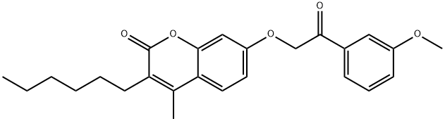 - Synonyms: 3-hexyl-7-[2-(3-methoxyphenyl)-2-oxoethoxy]-4-methylchromen-2-one 2H-1-Benzopyran-2-one, 3-hexyl-7-[2-(3-methoxyphenyl)-2-oxoethoxy]-4-methyl-