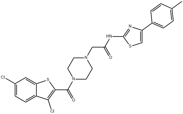 - Synonyms: 2-[4-(3,6-dichloro-1-benzothiophene-2-carbonyl)piperazin-1-yl]-N-[4-(4-methylphenyl)-1,3-thiazol-2-yl]acetamide 1-Piperazineacetamide, 4-[(3,6-dichlorobenzo[b]thien-2-yl)carbonyl]-N-[4-(4-methylphenyl)-2-thiazolyl]-