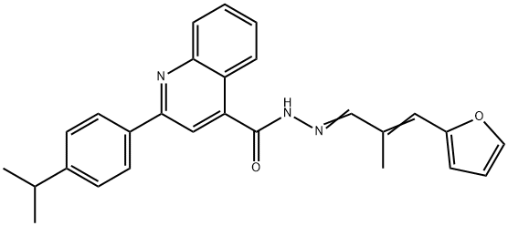 - Synonyms: 4-Quinolinecarboxylic acid, 2-[4-(1-methylethyl)phenyl]-, 2-[3-(2-furanyl)-2-methyl-2-propen-1-ylidene]hydrazide N-[(E)-[(E)-3-(furan-2-yl)-2-methylprop-2-enylidene]amino]-2-(4-propan-2-ylphenyl)quinoline-4-carboxamide
