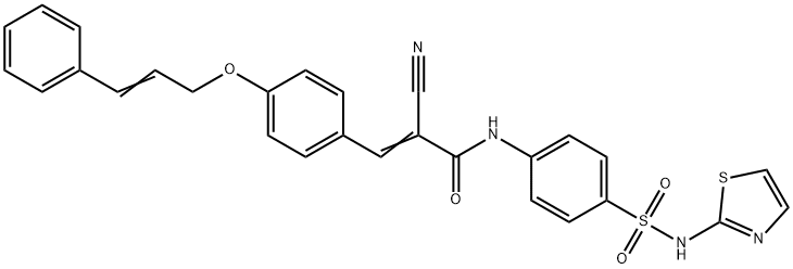 - Synonyms: (E)-2-cyano-3-[4-[(E)-3-phenylprop-2-enoxy]phenyl]-N-[4-(1,3-thiazol-2-ylsulfamoyl)phenyl]prop-2-enamide 2-Propenamide, 2-cyano-3-[4-[(3-phenyl-2-propen-1-yl)oxy]phenyl]-N-[4-[(2-thiazolylamino)sulfonyl]phenyl]-