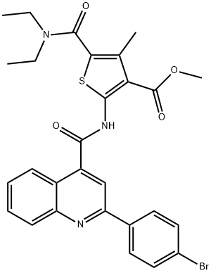 - Synonyms: methyl 2-[[2-(4-bromophenyl)quinoline-4-carbonyl]amino]-5-(diethylcarbamoyl)-4-methylthiophene-3-carboxylate 3-Thiophenecarboxylic acid, 2-[[[2-(4-bromophenyl)-4-quinolinyl]carbonyl]amino]-5-[(diethylamino)carbonyl]-4-methyl-, methyl ester