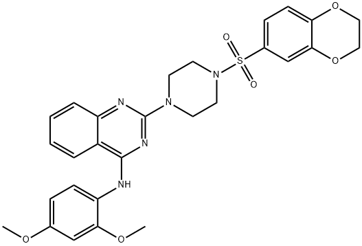 - Synonyms: 2-[4-(2,3-dihydro-1,4-benzodioxin-6-ylsulfonyl)piperazin-1-yl]-N-(2,4-dimethoxyphenyl)quinazolin-4-amine 4-Quinazolinamine, 2-[4-[(2,3-dihydro-1,4-benzodioxin-6-yl)sulfonyl]-1-piperazinyl]-N-(2,4-dimethoxyphenyl)-