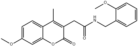 - Synonyms: 2-(7-methoxy-4-methyl-2-oxochromen-3-yl)-N-[(2-methoxyphenyl)methyl]acetamide 2H-1-Benzopyran-3-acetamide, 7-methoxy-N-[(2-methoxyphenyl)methyl]-4-methyl-2-oxo-