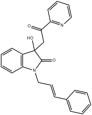 - Synonyms: 2H-Indol-2-one, 1,3-dihydro-3-hydroxy-3-[2-oxo-2-(2-pyridinyl)ethyl]-1-[(2E)-3-phenyl-2-propen-1-yl]- 3-hydroxy-3-(2-oxo-2-pyridin-2-ylethyl)-1-[(E)-3-phenylprop-2-enyl]indol-2-one