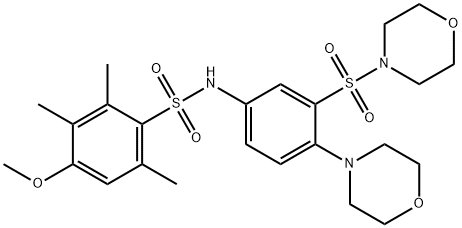 - Synonyms: 4-methoxy-2,3,6-trimethyl-N-(4-morpholin-4-yl-3-morpholin-4-ylsulfonylphenyl)benzenesulfonamide Benzenesulfonamide, 4-methoxy-2,3,6-trimethyl-N-[4-(4-morpholinyl)-3-(4-morpholinylsulfonyl)phenyl]-