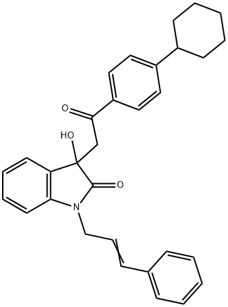 - Synonyms: 3-[2-(4-cyclohexylphenyl)-2-oxoethyl]-3-hydroxy-1-[(E)-3-phenylprop-2-enyl]indol-2-one 2H-Indol-2-one, 3-[2-(4-cyclohexylphenyl)-2-oxoethyl]-1,3-dihydro-3-hydroxy-1-(3-phenyl-2-propen-1-yl)-