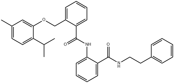 - Synonyms: 2-[(5-methyl-2-propan-2-ylphenoxy)methyl]-N-[2-(2-phenylethylcarbamoyl)phenyl]benzamide Benzamide, 2-[[2-[[5-methyl-2-(1-methylethyl)phenoxy]methyl]benzoyl]amino]-N-(2-phenylethyl)-