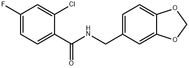 - Synonyms: N-(1,3-benzodioxol-5-ylmethyl)-2-chloro-4-fluorobenzamide Benzamide, N-(1,3-benzodioxol-5-ylmethyl)-2-chloro-4-fluoro-