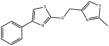 - Synonyms: Thiazole, 2-methyl-4-[[(4-phenyl-2-thiazolyl)thio]methyl]- 2-methyl-4-[(4-phenyl-1,3-thiazol-2-yl)sulfanylmethyl]-1,3-thiazole
