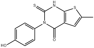 - Synonyms: 3-(4-hydroxyphenyl)-6-methyl-2-sulfanylidene-1H-thieno[2,3-d]pyrimidin-4-one Thieno[2,3-d]pyrimidin-4(1H)-one, 2,3-dihydro-3-(4-hydroxyphenyl)-6-methyl-2-thioxo-