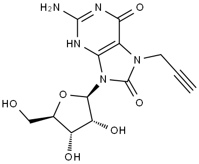 - Synonyms: Guanosine, 7,8-dihydro-8-oxo-7-(2-propyn-1-yl)- 2-amino-9-((2R,3R,4S,5R)-3,4-dihydroxy-5-(hydroxymethyl)tetrahydrofuran-2-yl)-7-(prop-2-yn-1-yl)-7,9-dihydro-1H-purine-6,8-dione