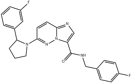 - Synonyms: Imidazo[1,2-b]pyridazine-3-carboxamide, N-[(4-fluorophenyl)methyl]-6-[2-(3-fluorophenyl)-1-pyrrolidinyl]- TRK-IN-13