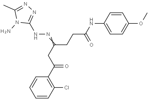 - Synonyms: (4E)-4-[(4-AMINO-5-METHYL-4H-1,2,4-TRIAZOL-3-YL)HYDRAZONO]-6-(2-CHLOROPHENYL)-N-(4-METHOXYPHENYL)-6-OXOHEXANAMIDE Benzenehexanamide, γ-[2-(4-amino-5-methyl-4H-1,2,4-triazol-3-yl)hydrazinylidene]-2-chloro-N-(4-methoxyphenyl)-ε-oxo-