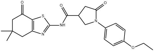 - Synonyms: N-(5,5-dimethyl-7-oxo-4,6-dihydro-1,3-benzothiazol-2-yl)-1-(4-ethoxyphenyl)-5-oxopyrrolidine-3-carboxamide 3-Pyrrolidinecarboxamide, 1-(4-ethoxyphenyl)-5-oxo-N-(4,5,6,7-tetrahydro-5,5-dimethyl-7-oxo-2-benzothiazolyl)-