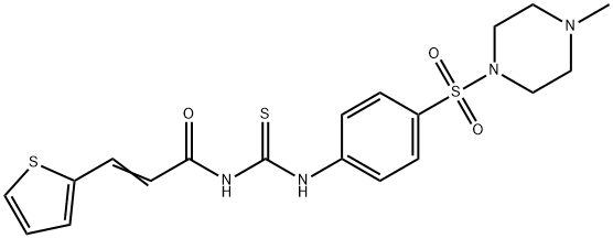 - Synonyms: N-[({4-[(4-methyl-1-piperazinyl)sulfonyl]phenyl}amino)carbonothioyl]-3-(2-thienyl)acrylamide 2-Propenamide, N-[[[4-[(4-methyl-1-piperazinyl)sulfonyl]phenyl]amino]thioxomethyl]-3-(2-thienyl)-