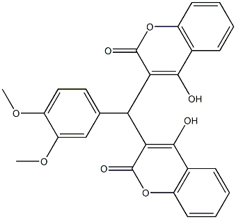 - Synonyms: 3-[(3,4-dimethoxyphenyl)-(4-hydroxy-2-oxochromen-3-yl)methyl]-4-hydroxychromen-2-one 3,3'-((3,4-DIMETHOXYPHENYL)METHYLENE)BIS(4-HYDROXY-2H-CHROMEN-2-ONE) 3,3'-((3,4-DIMETHOXYPHENYL)METHYLENE)BIS(4-HYDROXY-2H-CHROMEN-2-ONE)