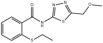 - Synonyms: 2-ethylsulfanyl-N-[5-(methoxymethyl)-1,3,4-thiadiazol-2-yl]benzamide Benzamide, 2-(ethylthio)-N-[5-(methoxymethyl)-1,3,4-thiadiazol-2-yl]-