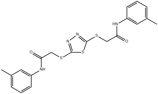 - Synonyms: 2,2'-(1,3,4-thiadiazole-2,5-diyldisulfanediyl)bis[N-(3-methylphenyl)acetamide] Acetamide, 2,2'-[1,3,4-thiadiazole-2,5-diylbis(thio)]bis[N-(3-methylphenyl)- (9CI)
