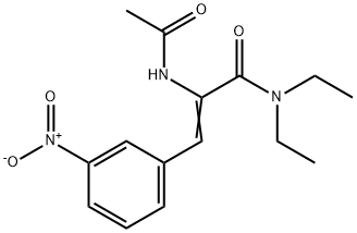 - Synonyms: 2-(acetylamino)-N,N-diethyl-3-(3-nitrophenyl)acrylamide (2Z)-2-(acetylamino)-N,N-diethyl-3-(3-nitrophenyl)prop-2-enamide 2-Propenamide, 2-(acetylamino)-N,N-diethyl-3-(3-nitrophenyl)-