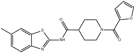 - Synonyms: 1-(furan-2-ylcarbonyl)-N-(6-methyl-1,3-benzothiazol-2-yl)piperidine-4-carboxamide 4-Piperidinecarboxamide, 1-(2-furanylcarbonyl)-N-(6-methyl-2-benzothiazolyl)-