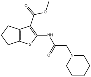 - Synonyms: methyl 2-[(1-piperidinylacetyl)amino]-5,6-dihydro-4H-cyclopenta[b]thiophene-3-carboxylate 4H-Cyclopenta[b]thiophene-3-carboxylic acid, 5,6-dihydro-2-[[2-(1-piperidinyl)acetyl]amino]-, methyl ester