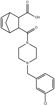 - Synonyms: 3-(4-(3-chlorobenzyl)piperazine-1-carbonyl)bicyclo[2.2.1]hept-5-ene-2-carboxylic acid Bicyclo[2.2.1]hept-5-ene-2-carboxylic acid, 3-[[4-[(3-chlorophenyl)methyl]-1-piperazinyl]carbonyl]-