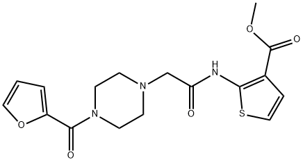 - Synonyms: methyl 2-(2-(4-(furan-2-carbonyl)piperazin-1-yl)acetamido)thiophene-3-carboxylate 3-Thiophenecarboxylic acid, 2-[[2-[4-(2-furanylcarbonyl)-1-piperazinyl]acetyl]amino]-, methyl ester