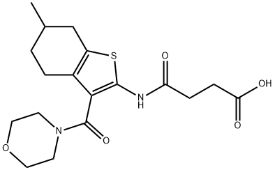 - Synonyms: 4-((6-methyl-3-(morpholine-4-carbonyl)-4,5,6,7-tetrahydrobenzo[b]thiophen-2-yl)amino)-4-oxobutanoic acid Butanoic acid, 4-oxo-4-[[4,5,6,7-tetrahydro-6-methyl-3-(4-morpholinylcarbonyl)benzo[b]thien-2-yl]amino]-
