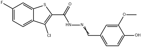 - Synonyms: (E)-3-chloro-6-fluoro-N'-(4-hydroxy-3-methoxybenzylidene)benzo[b]thiophene-2-carbohydrazide Benzo[b]thiophene-2-carboxylic acid, 3-chloro-6-fluoro-, 2-[(4-hydroxy-3-methoxyphenyl)methylene]hydrazide