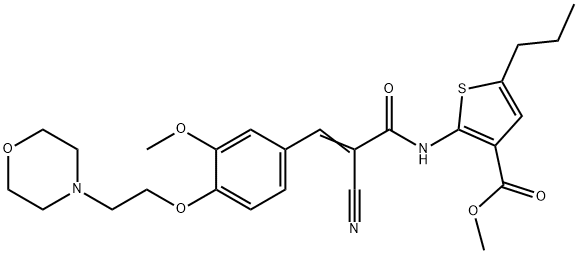 - Synonyms: (E)-methyl 2-(2-cyano-3-(3-methoxy-4-(2-morpholinoethoxy)phenyl)acrylamido)-5-propylthiophene-3-carboxylate 3-Thiophenecarboxylic acid, 2-[[2-cyano-3-[3-methoxy-4-[2-(4-morpholinyl)ethoxy]phenyl]-1-oxo-2-propen-1-yl]amino]-5-propyl-, methyl ester