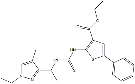 - Product Name:ethyl 2-(3-(1-(1-ethyl-4-methyl-1H-pyrazol-3-yl)ethyl)thioureido)-5-phenylthiophene-3-carboxylate