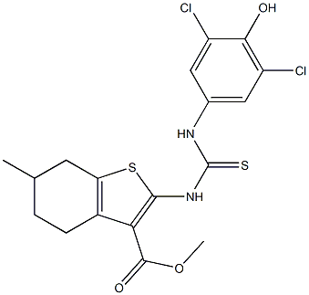 - Product Name:methyl 2-(3-(3,5-dichloro-4-hydroxyphenyl)thioureido)-6-methyl-4,5,6,7-tetrahydrobenzo[b]thiophene-3-carboxylate