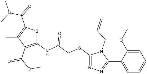 - Synonyms: methyl 2-(2-((4-allyl-5-(2-methoxyphenyl)-4H-1,2,4-triazol-3-yl)thio)acetamido)-5-(dimethylcarbamoyl)-4-methylthiophene-3-carboxylate
