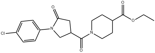 - Synonyms: ethyl 1-(1-(4-chlorophenyl)-5-oxopyrrolidine-3-carbonyl)piperidine-4-carboxylate 4-Piperidinecarboxylic acid, 1-[[1-(4-chlorophenyl)-5-oxo-3-pyrrolidinyl]carbonyl]-, ethyl ester