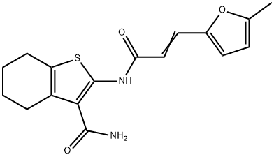 - Synonyms: 2-[[(E)-3-(5-methylfuran-2-yl)prop-2-enoyl]amino]-4,5,6,7-tetrahydro-1-benzothiophene-3-carboxamide Benzo[b]thiophene-3-carboxamide, 4,5,6,7-tetrahydro-2-[[3-(5-methyl-2-furanyl)-1-oxo-2-propen-1-yl]amino]-
