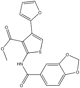 - Product Name:methyl 2-(1,3-benzodioxole-5-carbonylamino)-4-(furan-2-yl)thiophene-3-carboxylate