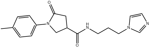 - Synonyms: 3-Pyrrolidinecarboxamide, N-[3-(1H-imidazol-1-yl)propyl]-1-(4-methylphenyl)-5-oxo- N-(3-imidazol-1-ylpropyl)-1-(4-methylphenyl)-5-oxopyrrolidine-3-carboxamide