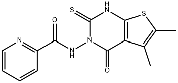 - Synonyms: N-(5,6-dimethyl-4-oxo-2-sulfanylidene-1H-thieno[2,3-d]pyrimidin-3-yl)pyridine-2-carboxamide 2-Pyridinecarboxamide, N-(1,4-dihydro-5,6-dimethyl-4-oxo-2-thioxothieno[2,3-d]pyrimidin-3(2H)-yl)-