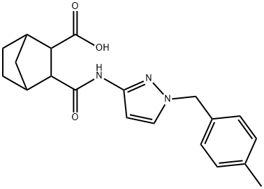 - Synonyms: 2-[[1-[(4-methylphenyl)methyl]pyrazol-3-yl]carbamoyl]bicyclo[2.2.1]heptane-3-carboxylic acid Bicyclo[2.2.1]heptane-2-carboxylic acid, 3-[[[1-[(4-methylphenyl)methyl]-1H-pyrazol-3-yl]amino]carbonyl]-