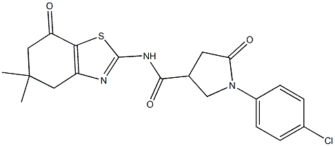 - Synonyms: 1-(4-chlorophenyl)-N-(5,5-dimethyl-7-oxo-4,6-dihydro-1,3-benzothiazol-2-yl)-5-oxopyrrolidine-3-carboxamide