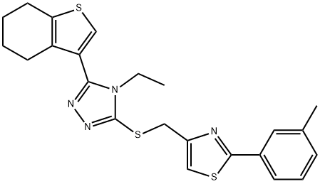 - Synonyms: 4-[[4-ethyl-5-(4,5,6,7-tetrahydro-1-benzothiophen-3-yl)-1,2,4-triazol-3-yl]sulfanylmethyl]-2-(3-methylphenyl)-1,3-thiazole 4H-1,2,4-Triazole, 4-ethyl-3-[[[2-(3-methylphenyl)-4-thiazolyl]methyl]thio]-5-(4,5,6,7-tetrahydrobenzo[b]thien-3-yl)-