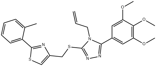 - Synonyms: 2-(2-methylphenyl)-4-[[4-prop-2-enyl-5-(3,4,5-trimethoxyphenyl)-1,2,4-triazol-3-yl]sulfanylmethyl]-1,3-thiazole 4H-1,2,4-Triazole, 3-[[[2-(2-methylphenyl)-4-thiazolyl]methyl]thio]-4-(2-propen-1-yl)-5-(3,4,5-trimethoxyphenyl)-