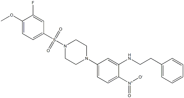 - Product Name:5-[4-(3-fluoro-4-methoxyphenyl)sulfonylpiperazin-1-yl]-2-nitro-N-(2-phenylethyl)aniline