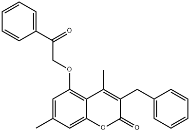 - Synonyms: 3-benzyl-4,7-dimethyl-5-phenacyloxychromen-2-one 2H-1-Benzopyran-2-one, 4,7-dimethyl-5-(2-oxo-2-phenylethoxy)-3-(phenylmethyl)-