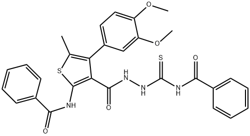- Product Name:N-[3-[(benzoylcarbamothioylamino)carbamoyl]-4-(3,4-dimethoxyphenyl)-5-methylthiophen-2-yl]benzamide