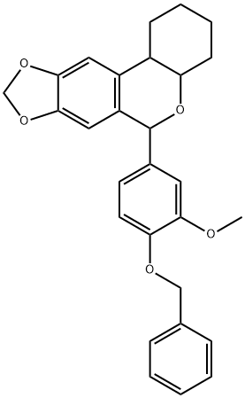 - Synonyms: 6-(3-methoxy-4-phenylmethoxyphenyl)-2,3,4,4a,6,11b-hexahydro-1H-[1,3]benzodioxolo[5,6-c]chromene 1H-[1]Benzopyrano[3,4-f][1,3]benzodioxole, 2,3,4,4a,6,11b-hexahydro-6-[3-methoxy-4-(phenylmethoxy)phenyl]-