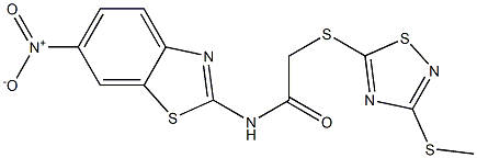 - Synonyms: 2-[(3-methylsulfanyl-1,2,4-thiadiazol-5-yl)sulfanyl]-N-(6-nitro-1,3-benzothiazol-2-yl)acetamide