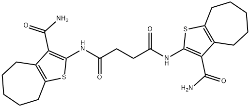 - Synonyms: N,N'-bis(3-carbamoyl-5,6,7,8-tetrahydro-4H-cyclohepta[b]thiophen-2-yl)butanediamide Butanediamide, N,N'-bis[3-(aminocarbonyl)-5,6,7,8-tetrahydro-4H-cyclohepta[b]thien-2-yl]- (9CI)